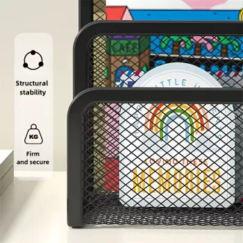 Black Metal Mesh Desk Organizer – 3-Tier Letter & Paper Tray Holder