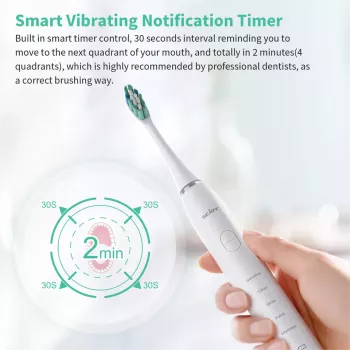 Rechargeable Sonic Electric Toothbrush with 12 Brush Heads & 5 Cleaning Modes